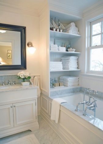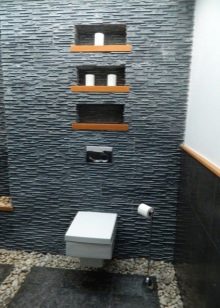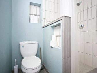The niche that is formed after the installation of equipment can be used as a shelf for decor and bath accessories. There is another option - make a cupboard with opaque doors over the toilet.