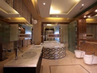 Constructions plasterboard used only in spacious bathrooms. In this case, the material undergoes moisture-proof treatment on both sides. For the frame, only a metal profile is used. Good ventilation is also required. Such a decision will cost the owners of the premises expensive, but the result can be very effective.