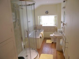 - Expanding the selection of plumbing and household appliances. In an enlarged space, not only standard sanitary equipment can fit, but also household appliances. For example, a place for a washing machine may appear.