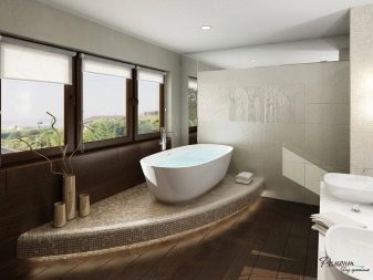 You can also choose a spectacular freestanding design made of cast iron or stone. In spacious rooms, baths with a podium look luxurious. The forms of modern models are different: rectangular, triangular, oval, round, etc.