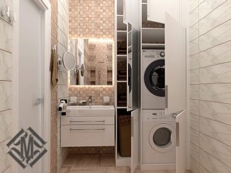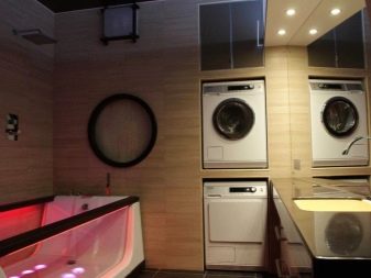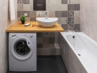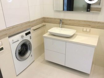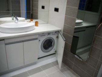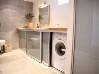 It is also better not to put the washing machine on public display, even if it is one of the latest models.. Often the equipment is built into a partition, cabinet or placed under the countertop. Ideally, the utility unit should also be closed with an opaque door.