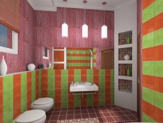 Especially successful in the bathroom look blue and white combinations. The soothing and fresh marine palette is perfect for taking water treatments. Pink and violet tones are usually liked by women. Such an interior is gentle and romantic.