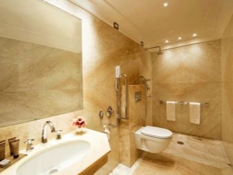 Lighting of the combined bathroom (especially if it is large) should be given special attention. It is advisable to install at least two types of lighting. This is described in more detail below.