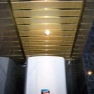 Popular material that can make the design of the toilet more attractive and stylish. Height differences can be hidden with such materials. This decoration in the room will not take away extra space. On the contrary tiles on the ceiling can visually enlarge the bathroom, make it lighter and taller.