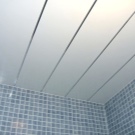 To finish the ceiling in the toilet, you can use not only PVC panels, but also drywall. But here simple sheets will not work. Only moisture resistant materials may be used. Similar products are mounted on the same principle as other popular pendant-type designs.