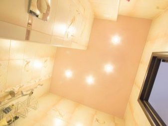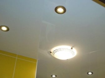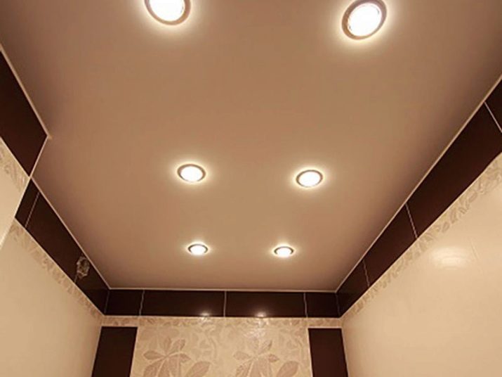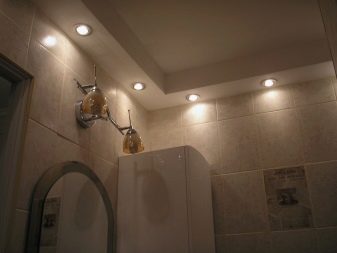 Making the ceiling in the toilet, it is not enough to pay attention only to the finishing materials or drawings on them. It is equally important to correctly place suitable lighting objects on a ceiling base. There are several lighting options suitable for this room.