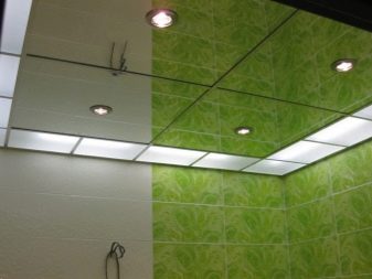 Do not confuse with tension. When organizing a false ceiling in the toilet, various materials can be used. The installation process may also vary, so the choice in this case becomes huge.