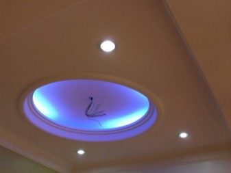 - Backlight Based on the level of backlight intensity, you can achieve a visual expansion of the space, to form a muffled atmosphere in the room. Often, diode tapes are installed if two-level (or more), soaring or plasterboard ceilings were used.