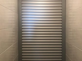 Initially, all rolling shutters were used exclusively as a complement to door and window openings. In the conditions of the bathroom, these details were not used for their intended purpose. These structures are a dense and strong canvas, which is assembled from lamellas. In the upper part, the web is wound on a special shaft located in a protective box.