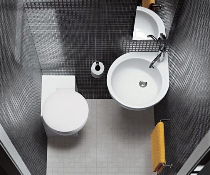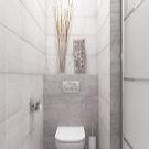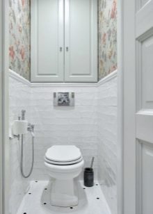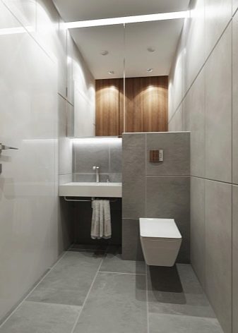 If possible, be sure to install in the toilet small hanging sink. If space permits, you can place closed cabinets under the washbasin for household chemicals and other items.