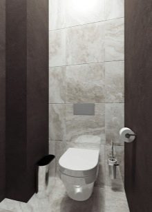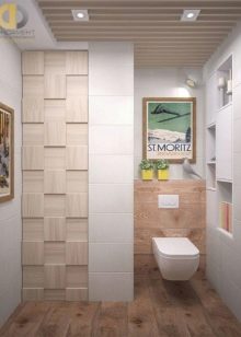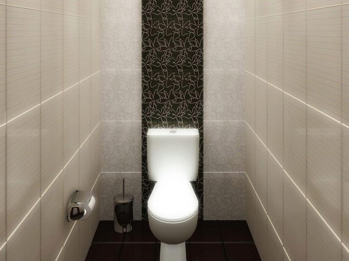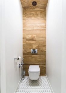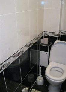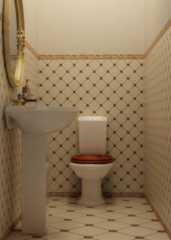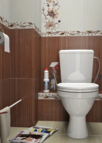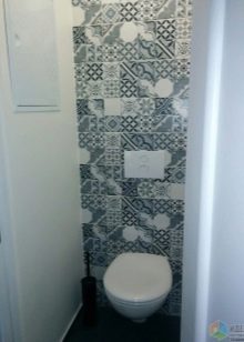 The best material for finishing the toilet room is still tile. However, kits that include the same medium-sized tiles in two colors and borders with ornaments are already a thing of the past. At the peak of popularity, ceramics imitating natural materials (wood, concrete, stone).