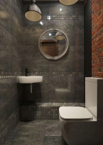 - The aesthetics of the loft imitate concrete or wood. In a small space you can combine dark surfaces with large white porcelain stoneware.