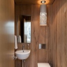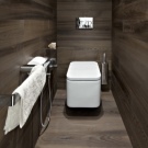 - Laminate. This coating is gaining popularity more and more. To design a toilet, it is better to choose moisture-resistant coatings. There is a wide selection of colors as well as laminate texture.