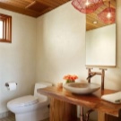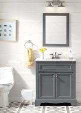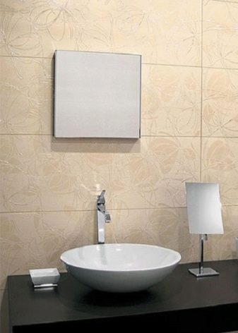 Another important element of the interior is mirror. For bathrooms, installation of large models is not required, a small mirror will be sufficient. It can be of any shape, supplemented with shelves or lights.