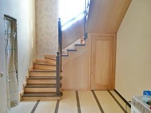 On the ground floor, the bathroom can be placed under the stairs. This will save the useful area of the house.