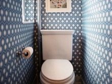 For a separate bathroom, you can use wallpaper. The tandem of this finishing material with wood looks stylish and cozy.