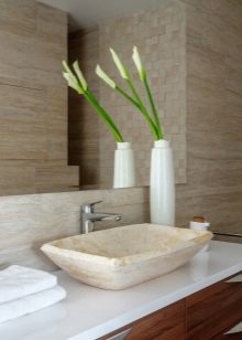 For small bathrooms it is better to choose a small-sized sink, and for larger rooms you can purchase any option.