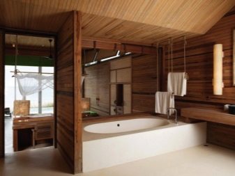 Wall decoration must be approached carefully. In humid rooms, fungus develops quickly, so the material x finish should be moisture resistant. So that the walls complement the overall interior of a wooden house, it is best to choose wood. Boards should be smooth and treated with moisture resistant agents.