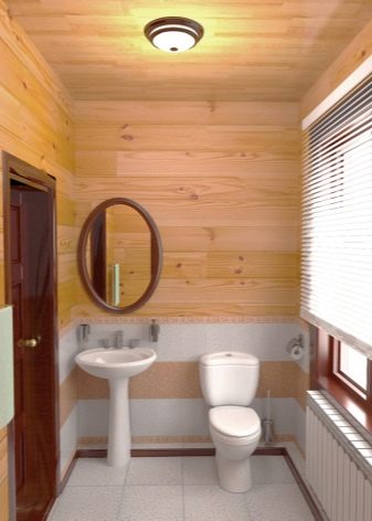If you decide to create a combined bathroom, then it is better to make a small wooden partition between the toilet and the bath or shower. This will help to divide the room into functional zones and make its design more interesting.