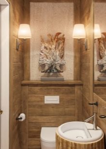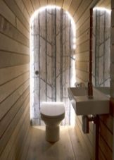 Such small toilet rooms should not be overloaded with too many decorative elements, as they can spoil the entire design of the bathroom. Most often, decoration using finishing materials. For decor, you can optionally use small multi-colored rug.