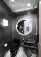 In small bathrooms "Khrushchev" you can install only one medium-sized ceiling lamp in the central part of the ceiling. It is permissible to install a special mini-system of point light sources, this solution is perfect for rooms decorated in dark colors. Bright backlight is better not to mount here.