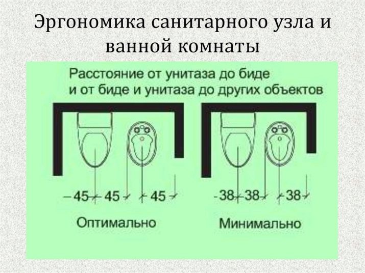 During the development of the project, it is important to provide sufficient space in front of the plumbing so that it is convenient to use the toilet and bidet.