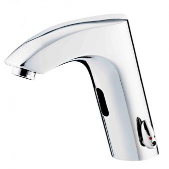 - Contactless faucets are the most hygienic and easy to use devices.Their work is based on the principle of the response of the photosensor to ultraviolet radiation, which is interrupted when a person’s hands are placed under a tap. In this case, automation automatically turns on the water, the temperature of which is previously set by the user with the help of a regulator installed on the thermostat. Such mixers operate on a lithium battery and are considered the most convenient and economical type.