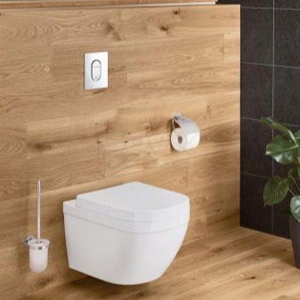 Another important fact when installing the toilet in your room is the fastening of the sanitary structure. It is this nuance that affects the design of the toilet room, and the possibility of installing utility networks.