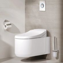 - Grohe Sensia Arena 39354SH0. One of the most expensive toilets, the cost of which is about 100 thousand rubles. This is an innovative model with the highest level of hygiene. The design involves a pair of adjustable bushings and maximum comfort of use. The toilet has a stylish design and flowing lines. It can serve for several decades, keeping its appearance unchanged.