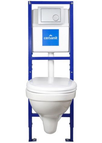 - Cersanit Delfi + Leon New. This wall-hung toilet with installation by users is recognized as the best. This instance can compete with all similar models, due to a significant difference in cost. For production, white faience is used, the dimensions are standard. The composite frame allows you to adjust the toilet placement parameters relative to the floor, this makes using the model even more convenient and comfortable. The drain flow is strong. Water is poured into the tank soundlessly.