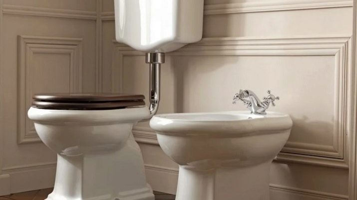 Do not forget that cons is an important aspect in installing a floor toilet with an upper tank. The product is more expensive than the classic, due to the connecting pipe. It is she who, after installation, can increase the cost of the work done to install the structure. The most expensive models are designer ones made to order. Although the barrel raised to the top will free up some space, the design is still considered more voluminous than conventional models. If you have a habit of placing a cabinet for storing trifles over a normal toilet, then with the installation of a high tank you will have to forget about it.