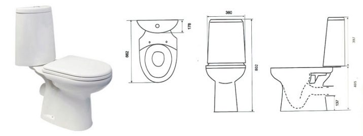 This model is considered the smallest of the entire range of products. The installation depth of the sample is almost 59 centimeters. The set with the toilet comes with dual-mode fittings, a seat and special fasteners with screws.