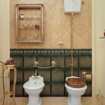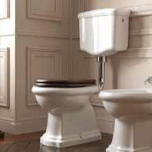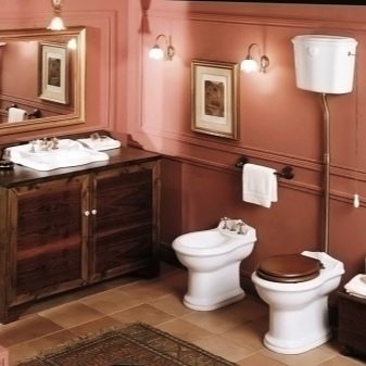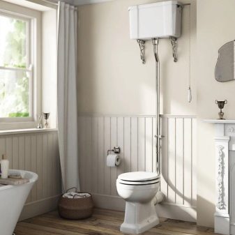 The modern plumbing market offers toilet bowls in a wide range of colors and designs. This greatly facilitates the selection of the desired model and allows you to choose the device in accordance with the design of the bathroom or toilet. For classic style, as well as for Provence and retro styles many manufacturers have launched the production of toilets with an upper flush tank, which is located on a high pipe. Such models fit perfectly into the above styles, especially accurately reflecting and emphasizing the spirit and atmosphere of those times.