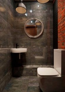 - If the bathroom is really tiny, and there is no possibility to install a drain tank in the wall, you can buy a small round toilet bowl with an upper tank on a long pipe. Such models, although infrequently, are still on sale and will be a good solution for miniature bathrooms.