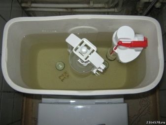 When you press the flush button, the pear floats to the surface of the water, opens a drain hole and allows water to exit the tank into the bowl. After the flush button is released, the pear returns to its place and reliably closes the drain hole of the tank. Such tanks are equipped with overflow protection, represented by a discharge pipe.