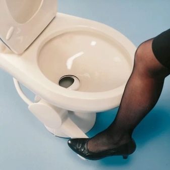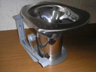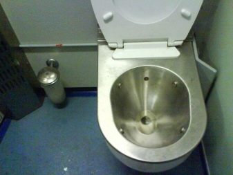 A review of the varieties of toilets would not be complete without mentioning the special samples, which include the toilets installed on trains. Such models have a reinforced structure, consisting of a sturdy steel casing, and are equipped with a foot switch or a vacuum drainage system. At the first, the water supply to the flush is carried out after pressing the pedal and occurs synchronously with the opening of the lower damper. The second are better known as dry closets, in which the process of flushing and removing feces occurs after pressing a special key located on the side of the toilet bowl on the wall.