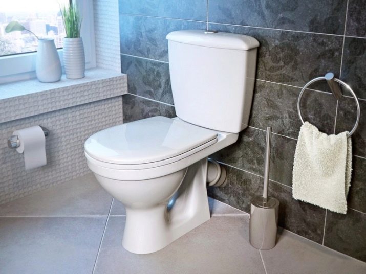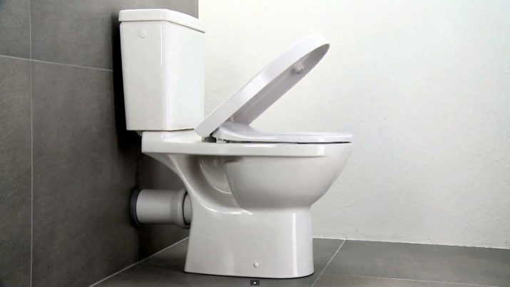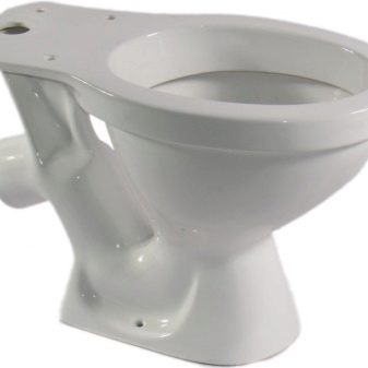 A toilet with an oblique outlet is selected if the sewer lounger is located in the floor too close to the wall and there is no way to use the vertical outlet. The connection of the toilet to the sewer pipe is performed by means of a corrugated pipe.
