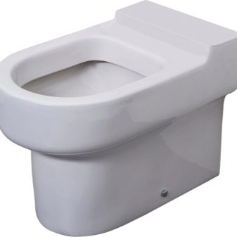 At plate-shaped patterns the back wall of the bowl is made in the form of a horizontal ledge and resembles a plate in shape. The advantage of this design is the absence of a splash when fecal matter enters the bowl, and the disadvantages include an unpleasant odor that will spread from the toilet until flushing is performed.