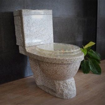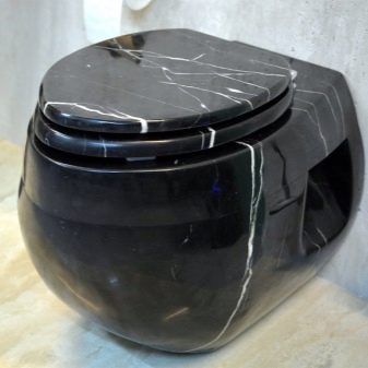 - Natural and artificial stone It is also used to create original models and allows designers to implement bold developments and implement the most incredible ideas. Stone toilets look expensive and serious, indicating the wealth and delicate taste of the homeowners.They fit perfectly into most interior styles, but look more harmonious in classics and baroque. The disadvantages of stone models are the high cost, the cold surface of natural material and too much weight, which is why it is undesirable to install them in houses with wooden floors.