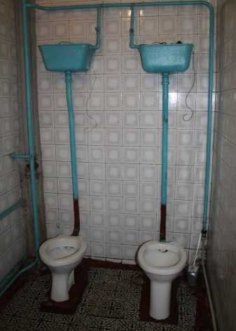 The Soviet toilet was an earthenware bowl with a drain tank, towering above it on a long pipe. A metal chain was attached to the drain handle, equipped with a wooden knob for convenience. Such copies were made honestly, because of which they can still be seen in the communal apartments of the countries of the former USSR.