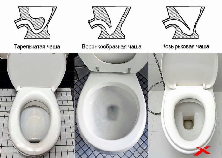 According to their design, there are toilet bowls dish-shaped, visor and funnel-shaped.