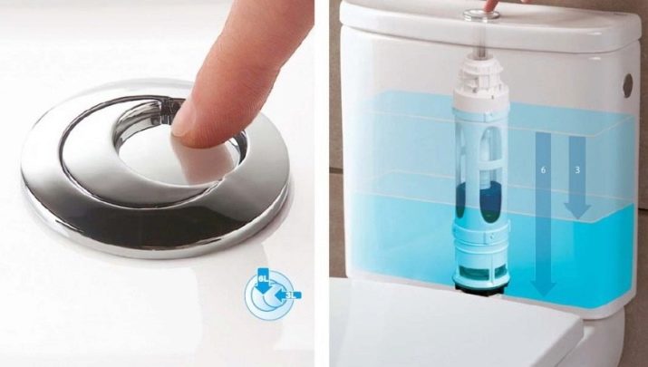 In some models, to completely empty the tank, you must press both buttons. The push-button drainage system allows you to significantly save water and not drain the entire tank as a whole after visiting the toilet for little need.