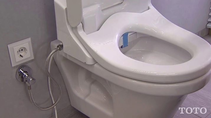 - Japanese company Toto produces high-tech toilets equipped with a large number of additional options. As an example, consider a suspended model Toto CF CW132Y + TCF6530G with electronic bidet seat and adjustable temperature.The toilet is equipped with an antibacterial coating, a flush that operates in two and three-jet mode, the option of pre-wetting the bowl and remote control of the lid, ensuring its smooth closing. The device has a heated seat and a dryer that supplies warm air. This Asian model costs 135800 rubles.
