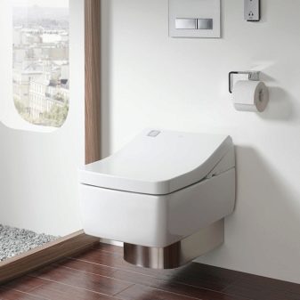 The bezelless variety does not have a traditional rim in the bowl - this model is considered more hygienic, but their cost is higher. The company Toto produces a variety of models of floor and suspended models, which, in addition to the main functionality, have many features, for which they are called "smart". Plumbing Toto has control unitswhich is carried out using a remote type. The panel is placed either in the structure itself or separately hanging on the wall.