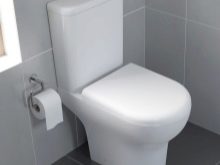 - Attached toilets. Such a model is attached to the floor, however, the tank is either fixed close to the wall or mounted in it. Attached products save space, but their cleaning requires additional effort, as there are hard-to-reach places.