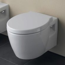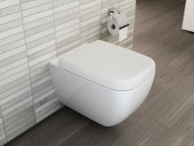 - Wall hung toilet Vitra Metropole - 5676В003-1086. The standard design of the porcelain hanging bathroom is suitable for any interior of the toilet room. The compact, shortened rectangular model with a bowl height of 33 cm is convenient not only to use, but also to clean, as it is possible to easily wash even the most inaccessible places. The drain mode is determined by the installation system. A cover-seat with a SoftClose system (soft closing) is not provided with the toilet, however, it can be purchased separately. The cost of such a model is 26500-27000 rubles (2019).