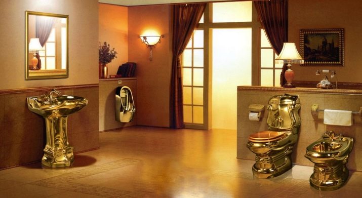 However, gold plumbing, as a rule, is installed in spacious rooms. The type of cover also matters. It can be made in a single color or differ, but there should not be any cardinal contradictions here.