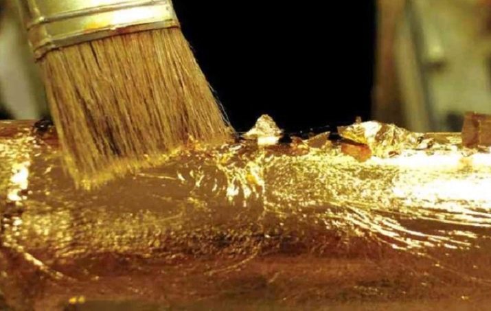 Gold leaf (transfer or free). It requires accuracy and skills, otherwise the surface will be imperfect. Free gilding is performed with a very thin layer of precious metal, it requires professional skills. Transfer is a gold layer on paper, can be performed by a lay person.