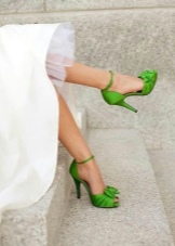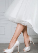 Often satin shoes become part of a wedding outfit. In this case, shoes with a thin stiletto or high heel, decorated with ribbons or rhinestones, are ideal.