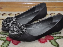 Ballet flats made of satin material are combined with blue jeans or a small black dress. Also ballet flats are suitable for a strict skirt of medium length.